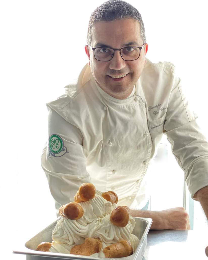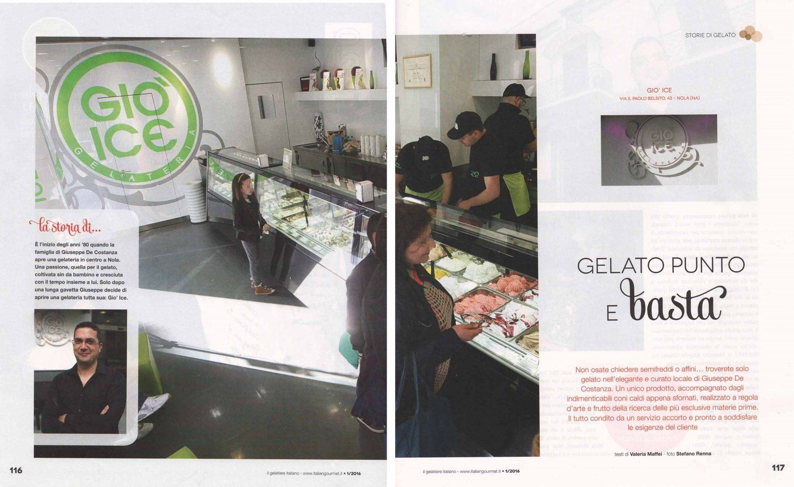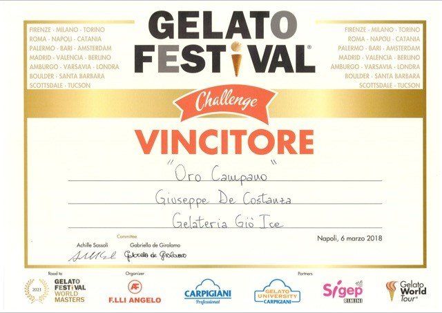 Figlio d’arte, Giuseppe De Costanza di Giò Ice a Nola, Na, dopo aver approfondito arte e tecnica gelatiera al Capac di Milano con Caviezel e Pozzi, si è fatto conoscere con gusti identitari come Oro Campano